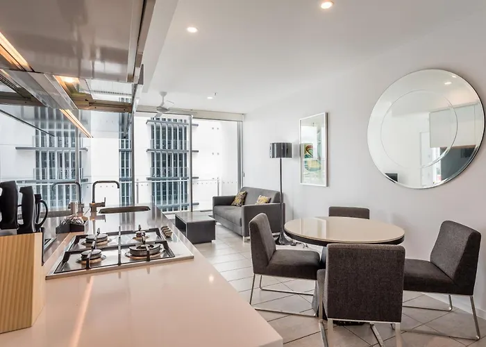 Een ingerichte keuken met een waterkoker, een koelkast en keukengerei is beschikbaar als onderdeel van de zelfvoorzienende voorzieningen van het appartement. Brisbane Central station is binnen 25 minuten wandelafstand van deze accommodatie.